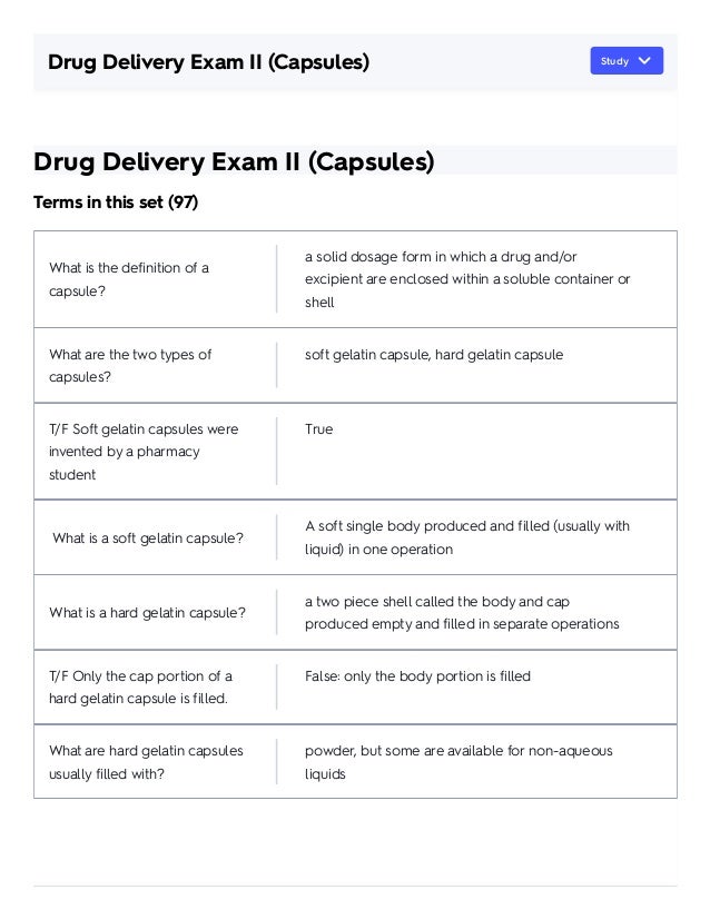 Drug Delivery Exam Ii Capsules Flashcards Quizlet Pdf